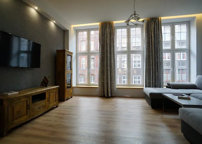 Apartament Mariacka 42 ferielejlighed ligger 1,3 km fra Hewelianum Center og tilbyder indkvartering med fri Wi Fi i hele ejendommen. Det tilbyder indkvartering med tv, en spiseplads og et opholdsområde.